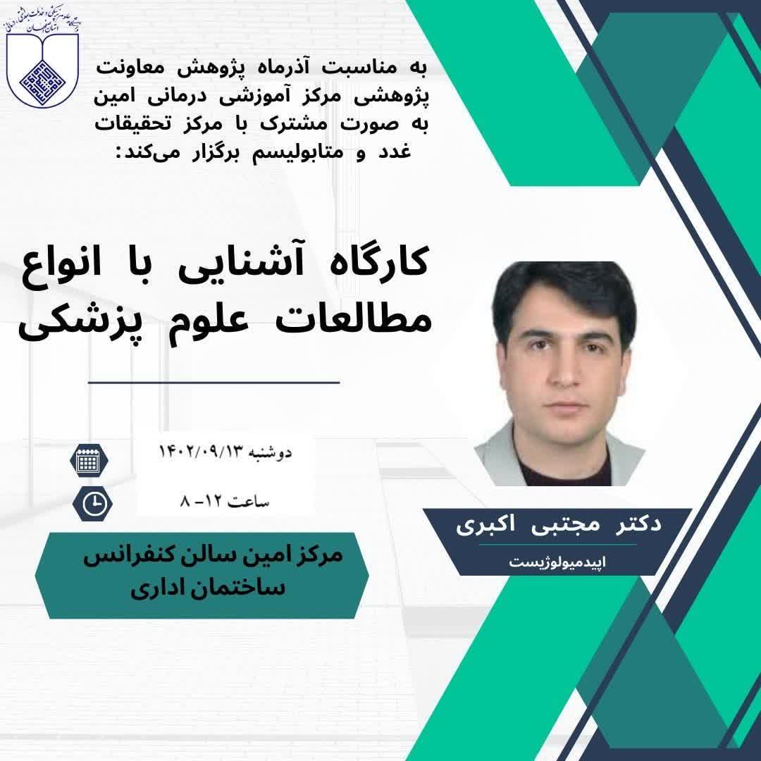 به مناسبت آذر ماه پژوهش معاونت پژوهشی، مرکز تحقیبقات غدد و متابولیسم به صورت مشترک با مرکز آموزشی درمانی امین برگزار می کند: