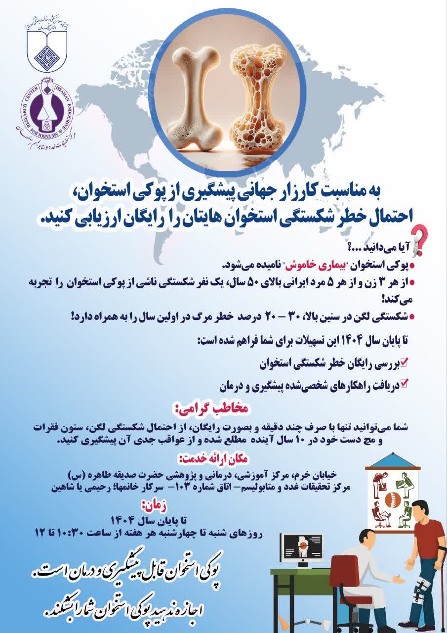 شما میتوانید با صرف چند دقیقه، بصورت رایگان، احتمال شکستگی لگن، ستون فقرات و مچ دست خود در ۱۰ سال آینده را بدانید و از عواقب جدی آن پیشگیری کنید.